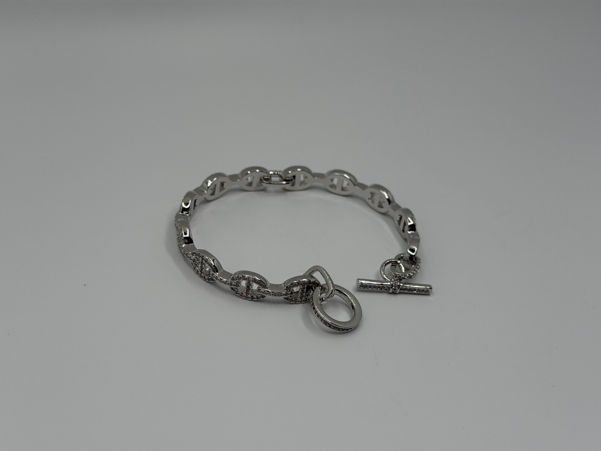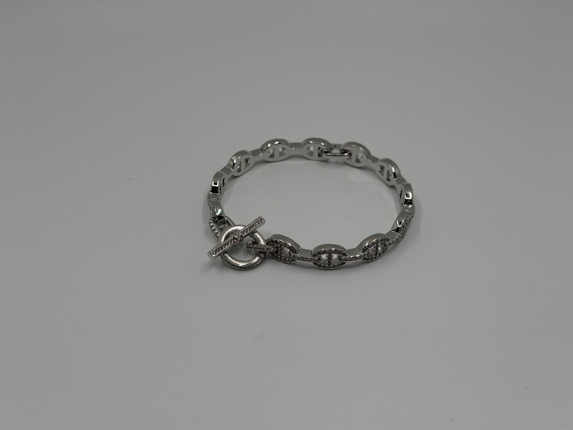 Elevate your everyday look with the Luna Bracelet. Designed with polished silver-tone links and shimmering pavé accents, this bracelet delivers effortless elegance with a modern edge. Finished with a secure toggle clasp, it’s perfect for wearing solo or stacking with your favorite pieces.