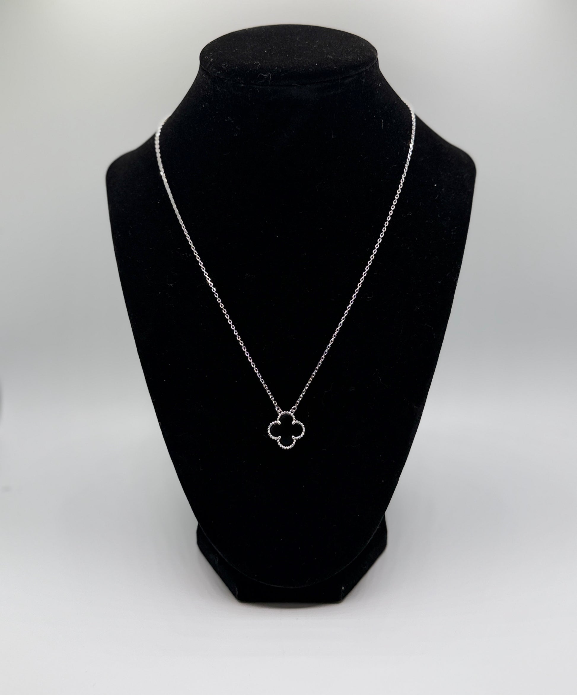 This dainty necklace features a sweet four-petal clover pendant with soft, rounded edges and a subtle beaded detail. Lightweight and easy to wear, it adds the perfect touch of shine to any outfit. Whether you’re dressing it up or keeping it casual, this 18” full length necklace is made to be worn every day. Cute, simple, and effortlessly stylish.