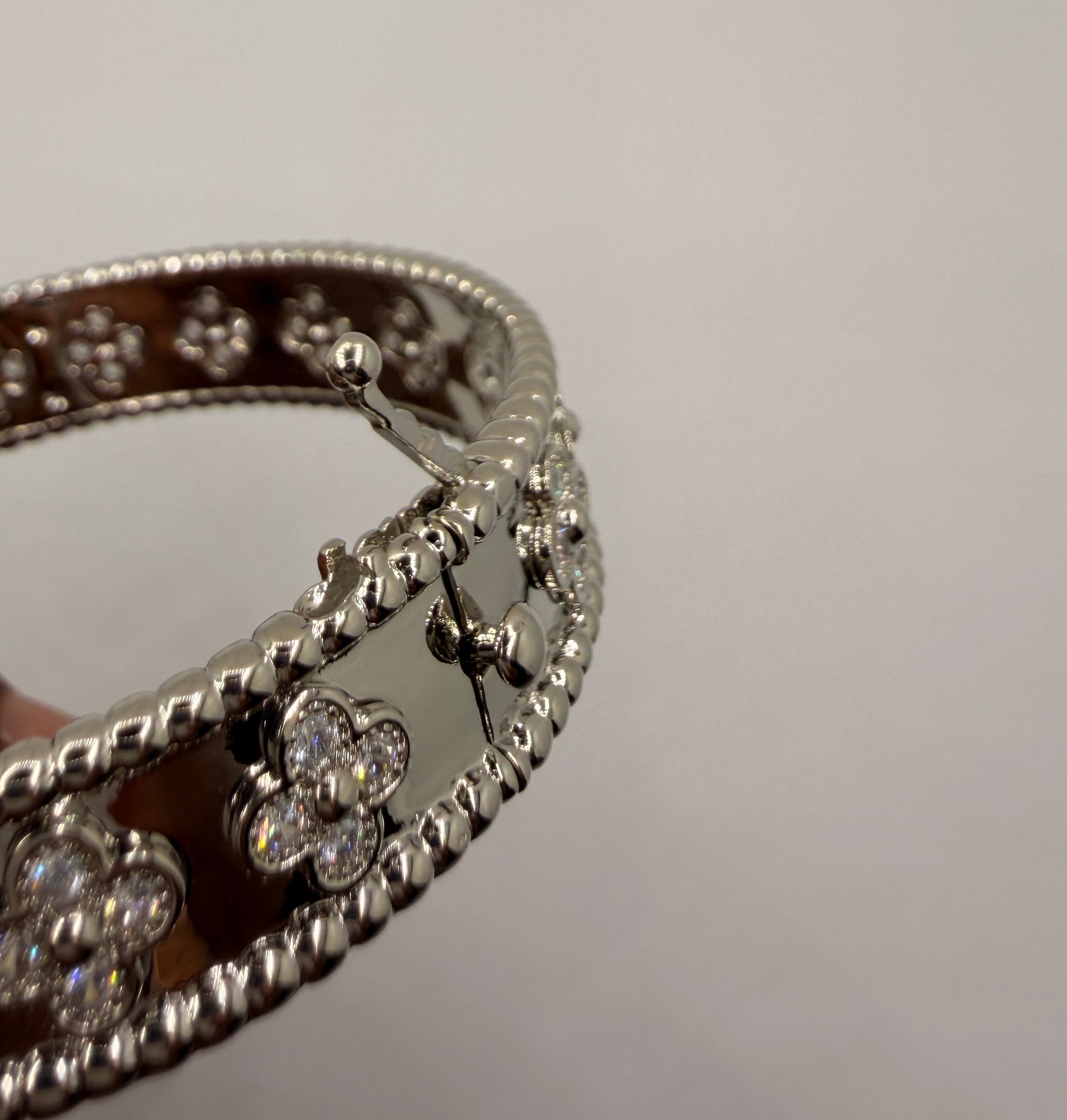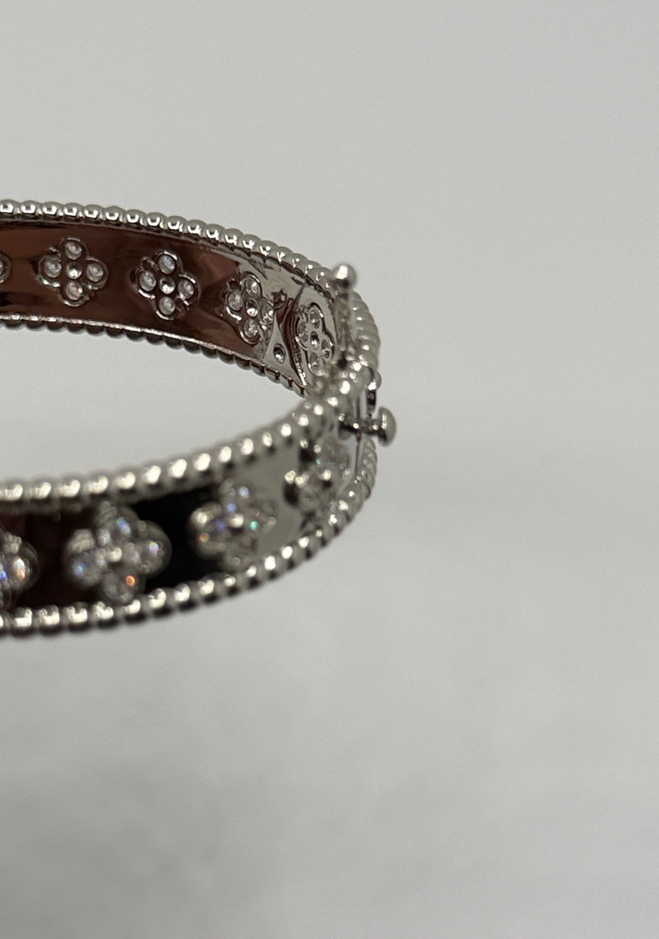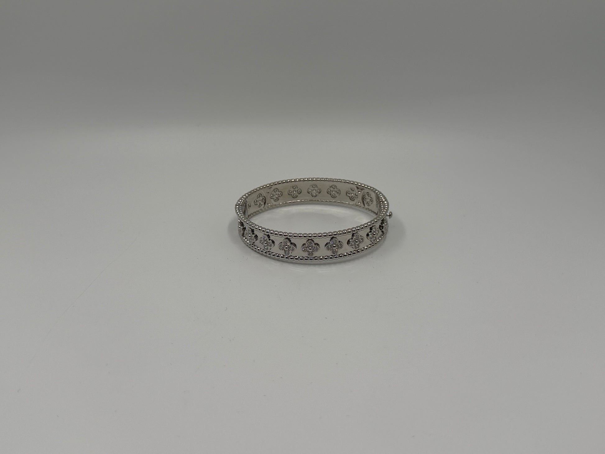 Timeless and elegant, the Clover Hinged Bracelet features delicate clover-inspired motifs accented with subtle sparkle. Crafted in a polished silver-tone finish, this bracelet adds a refined touch to both casual and dressy outfits.